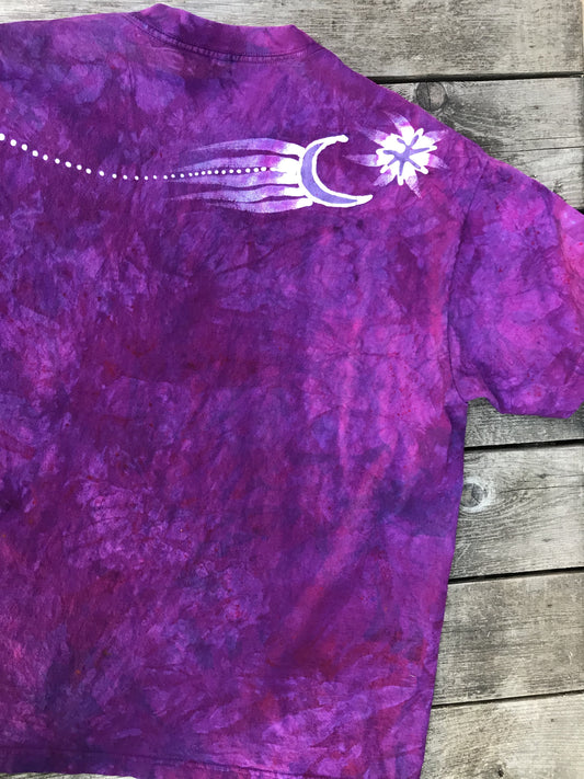Purple Star With Perpetual Swirls Pullover Hoodie - Handcrafted Batik - Size SMALL