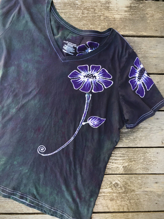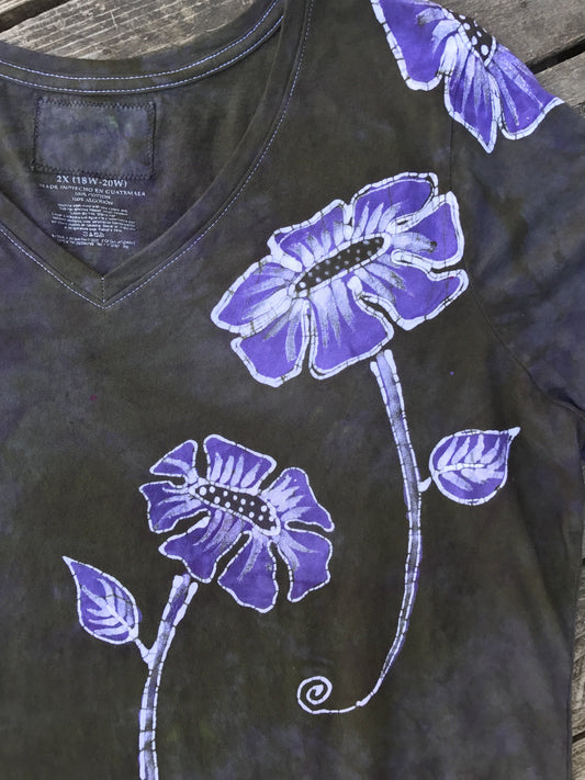 Purple Poppy Flower Power Handmade Batikwalla Vneck Tee - Plus Size 2X