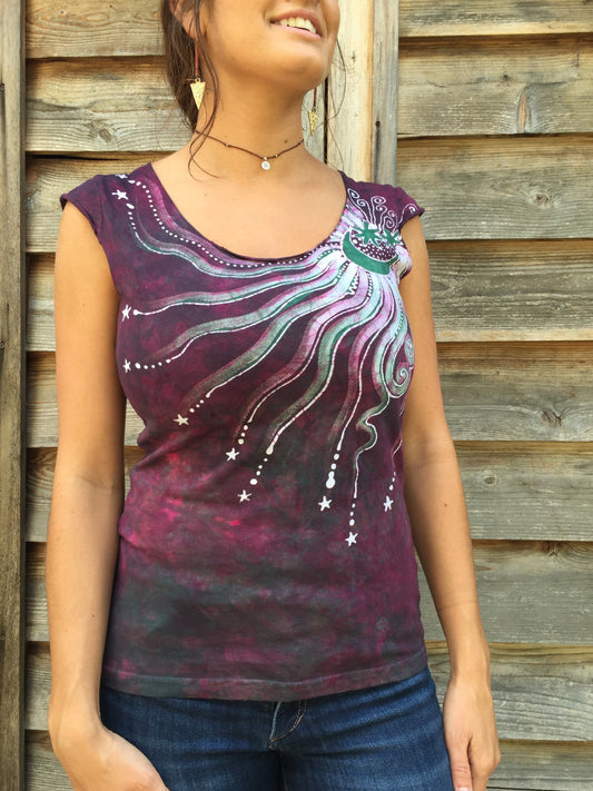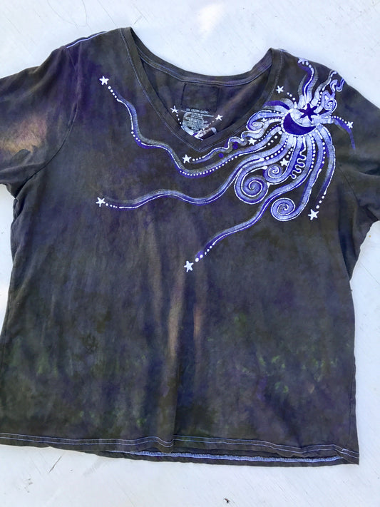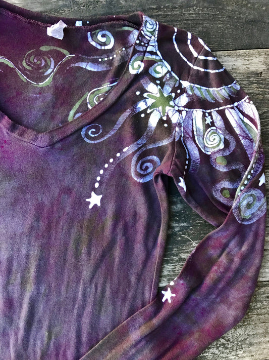 Sale Basket - Lightly Sweet Center Star in Bright Purple Hand Painted Vneck Tee - Size XL