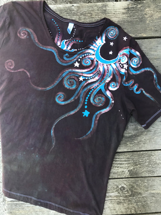 Sagacious Sun Soothes The Blues - Handmade Batik Tshirt - Size Large