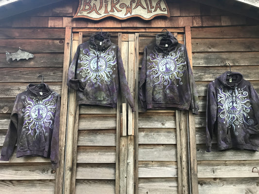 Sage Purple Tree Pullover Batik Hoodie - Handcrafted In Organic Cotton