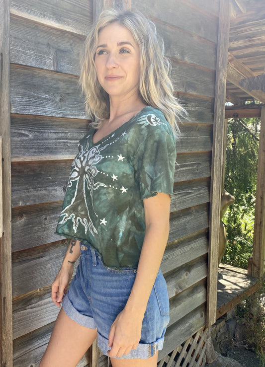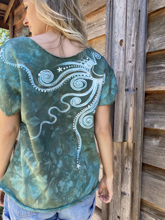 Sage Mint Tree Organic Cotton Handmade Batik Top, Size Large