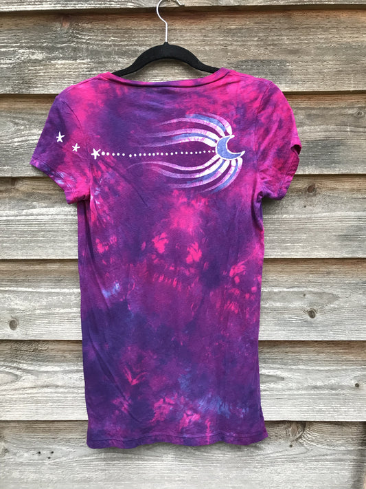 Super Different Center Star in Bright Purple Hand Painted Vneck Tee - Size Large