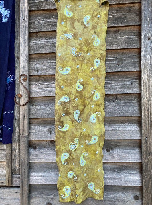 Sunshine Paisley Tea - Hand Painted Organic Cotton Batik Scarf