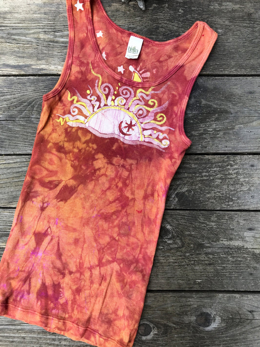 Sweet Orange Sunrise Handmade Batik Tank Top in Organic Cotton