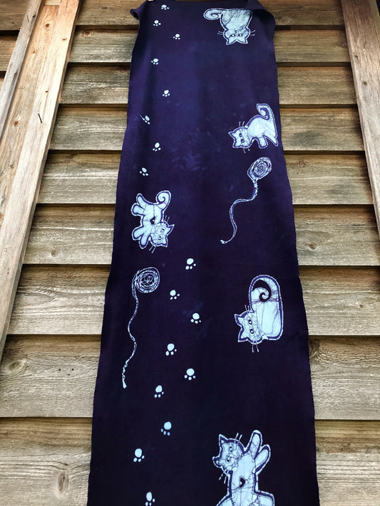 Sweet Kittens Playing Hand Painted Organic Cotton Batik Scarf