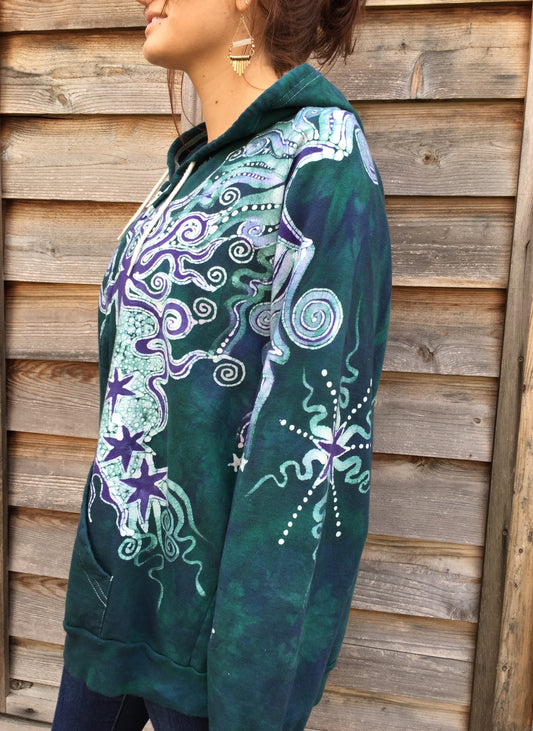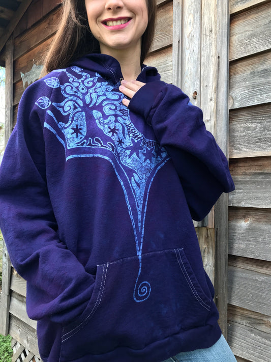 Teal & Purple Tree Reaching To The Moon Batik Hoodie