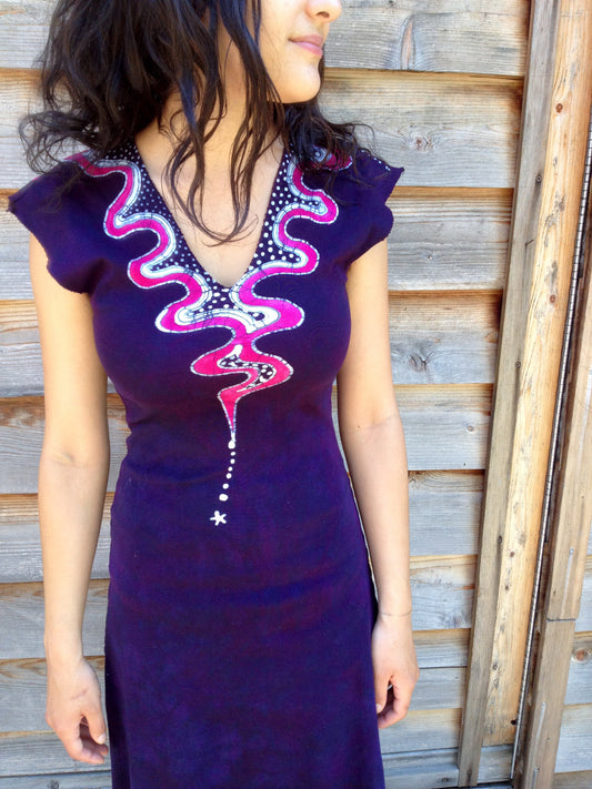 Teal and Purple Batik Om - Short Sleeve Dress