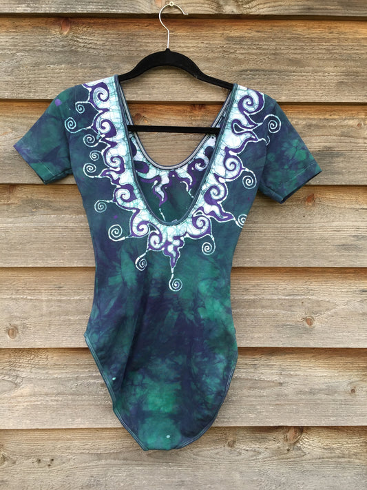 Teal and Purple Batik Necklace Dance Leotard