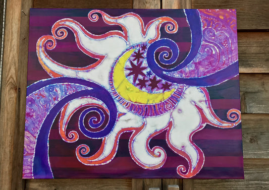 Swirling Sun and Stripes Canvas Giclée Batik Print