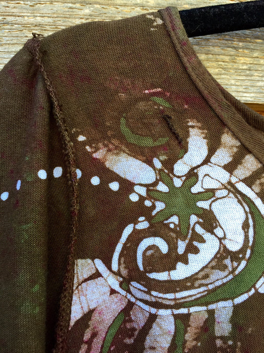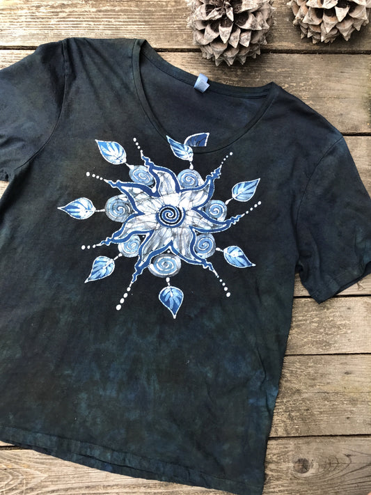 Swirling Leaves Handmade Batik Scoop Neck Tshirt - Size Large
