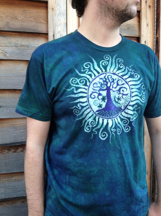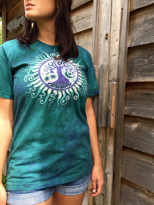 Teal and Purple Tree of Life Organic Batik Tshirt