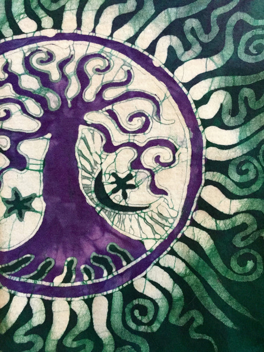 Teal and Purple Tree of Life Handmade Batik Tshirt