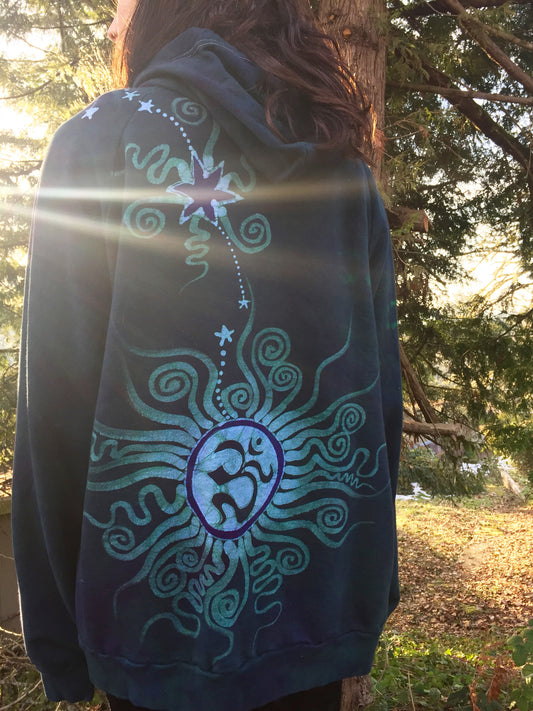 Teal and Purple Tree Moon Organic Cotton Batik Hoodie