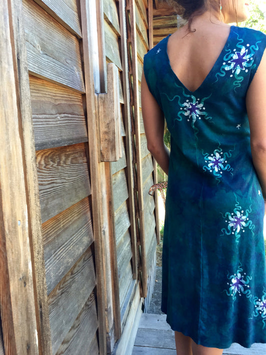 Teal and Purple Tree in the Forest Organic Cotton Batik Dress