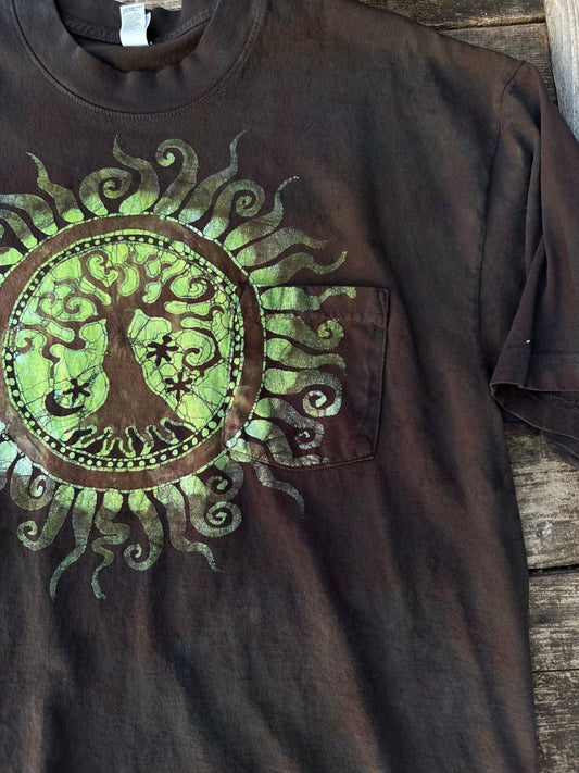 Very Dark Brown Tree of Life Handmade Batik Tshirt with Hidden Pocket