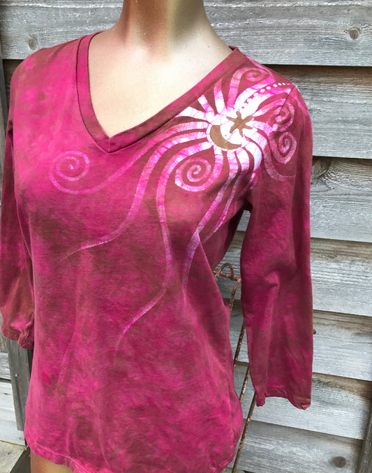 Wild Rose Handmade Batik - 3/4 Sleeve Top - Size Large