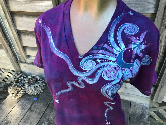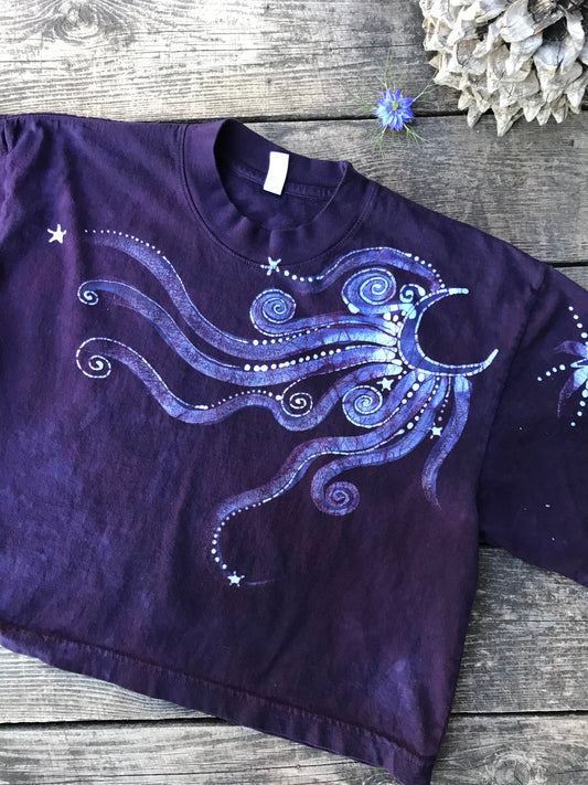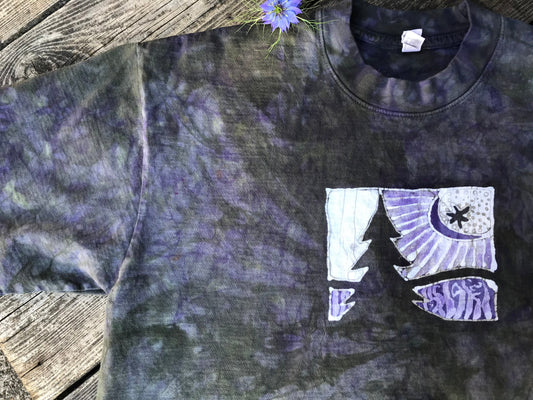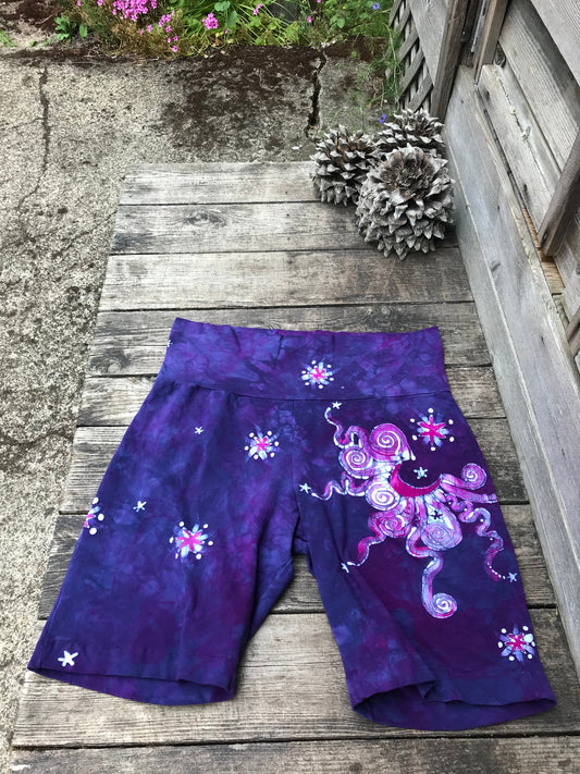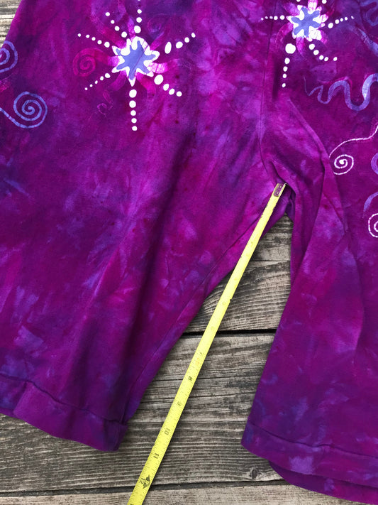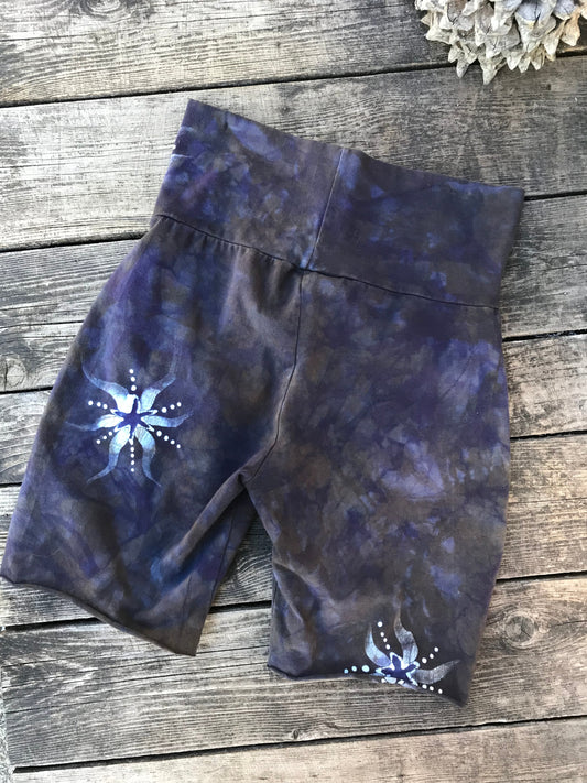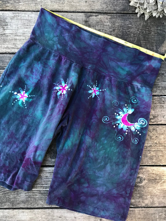 Moon and Stars Batik Biker Shorts - Sage and Purple - Size Medium