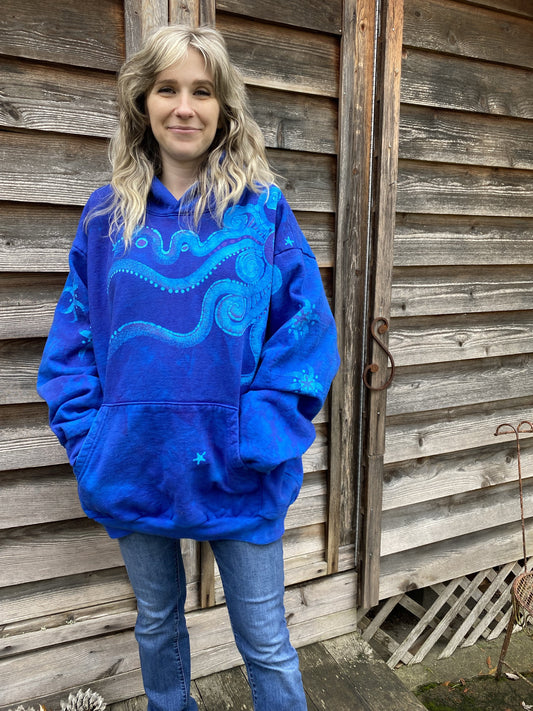 Bright Blue Moonlight Cascade Batik Pullover Hoodie - Size 2X