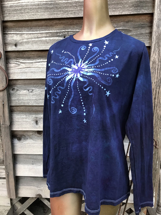 Midnight Star in Blue and Purple Handmade Long Sleeve Batik Top