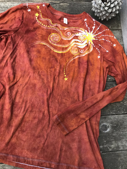 Orange Spice Star Blaze Handmade Long Sleeve Batik Top