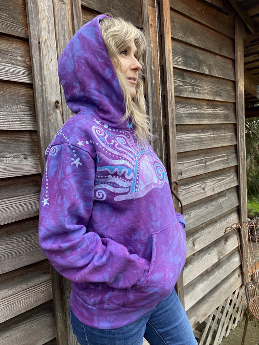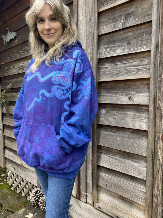 Light Blue Purple Sunset - Handcrafted Batik Pullover Hoodie - Size 2X