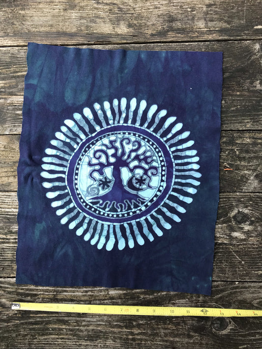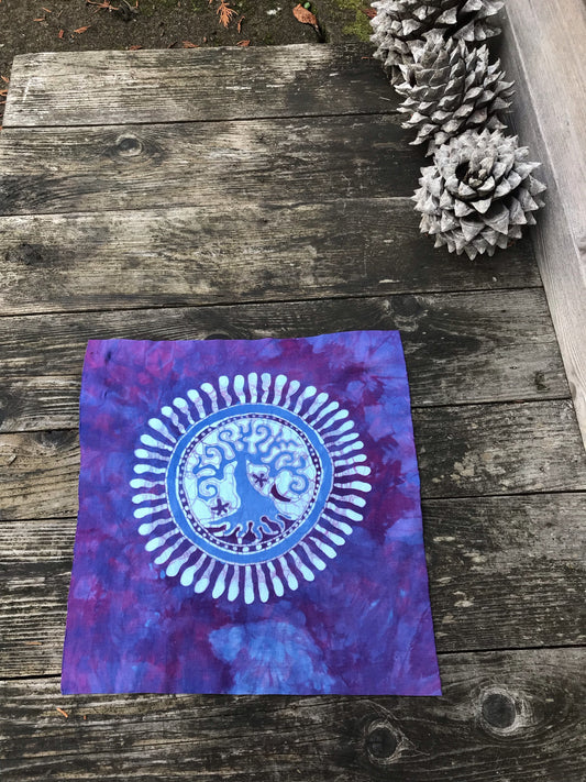 Hand Painted Batik Fabric Square - Tree of Life in Teal and Purple