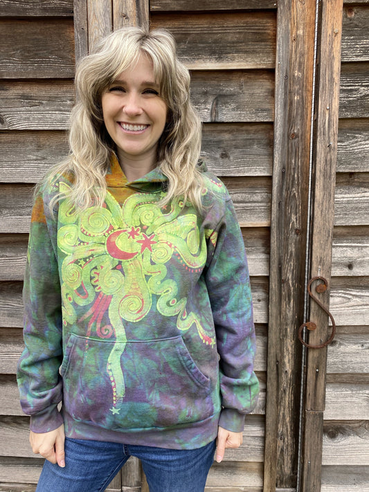 Sunrise Starburst in Sea Glass Green - Handcrafted Batik Pullover Hoodie - Size Small