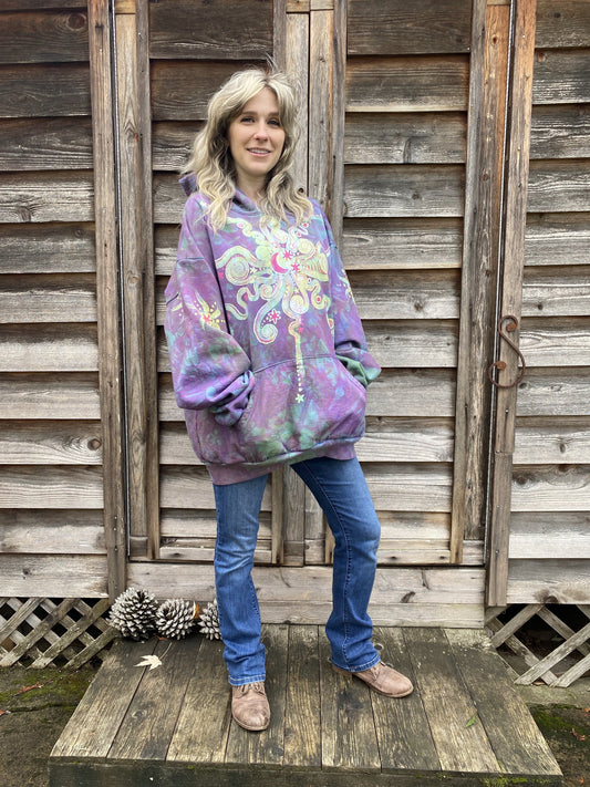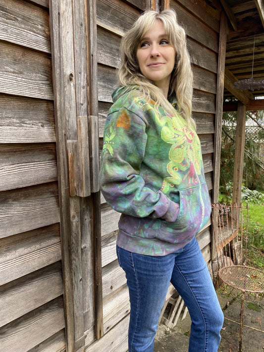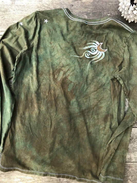 Olive Tree of Life - Handcrafted Batik Pullover Hoodie - Size SMALL Unisex