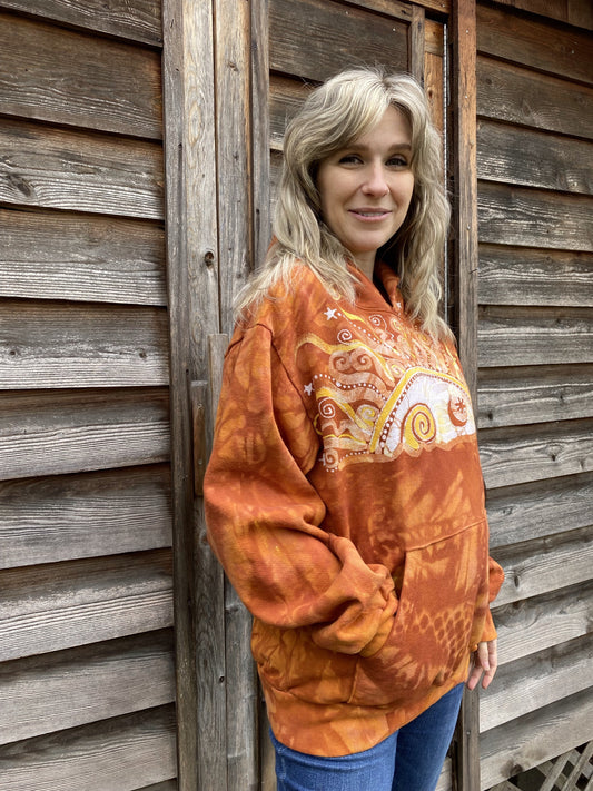Orange Spice Sunset - Handcrafted Batik Pullover Hoodie