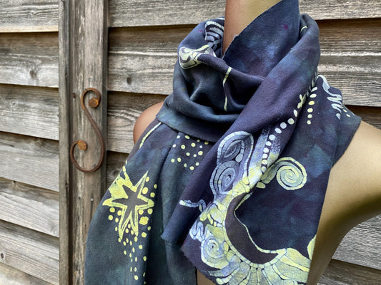 Starseed Moongazer - Hand Painted Organic Knit Fabric Scarf