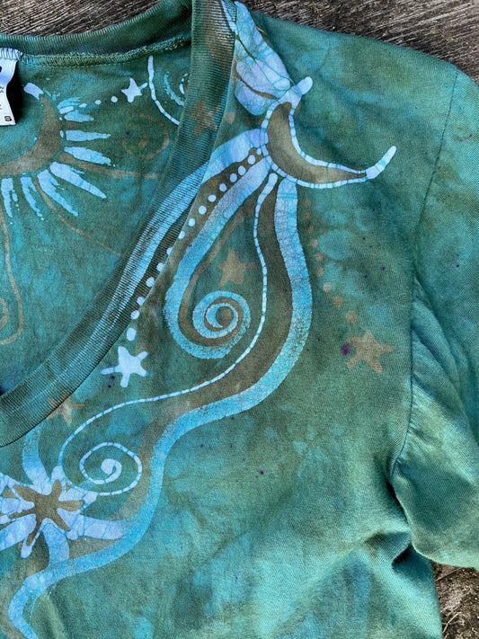 Moonbeams and Mint Stars Batik Vneck Tshirt - Size Small