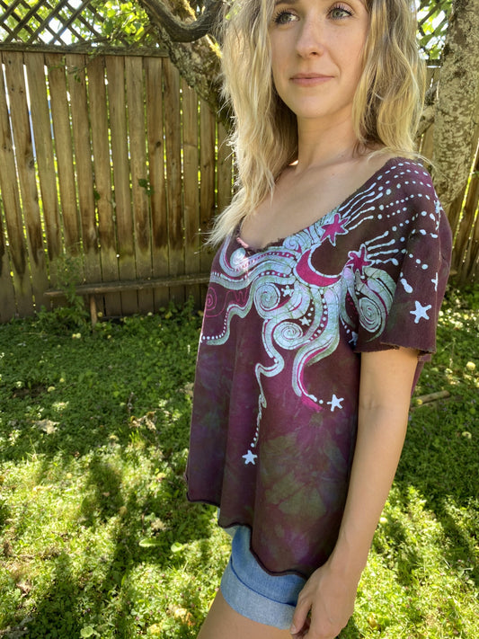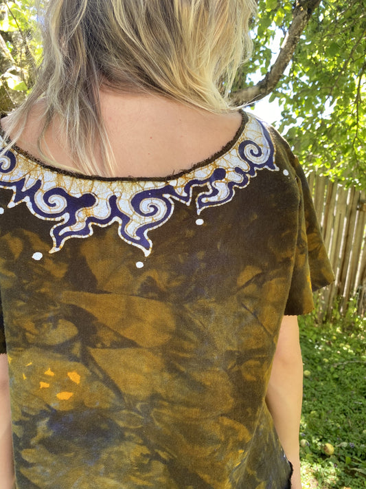 Moonbeams Neckline Semi-Crop Organic Cotton Handmade Batik Top - Medium/Large