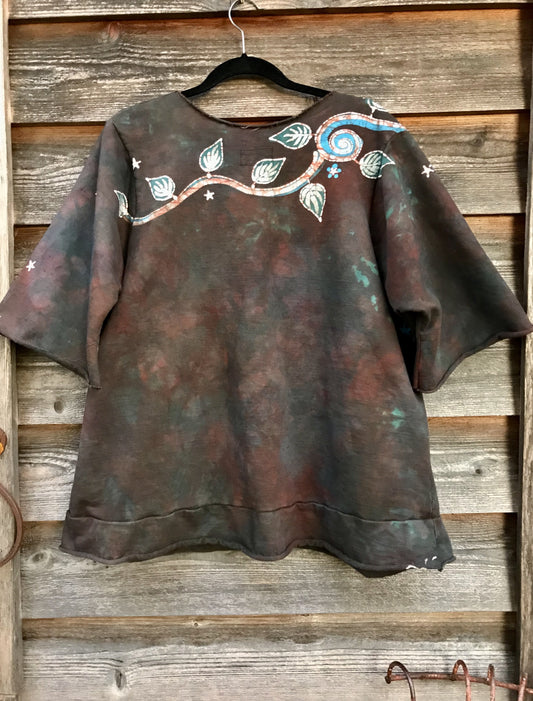 Roots Run Deep Organic Cotton Handmade Batik Top, Size Large