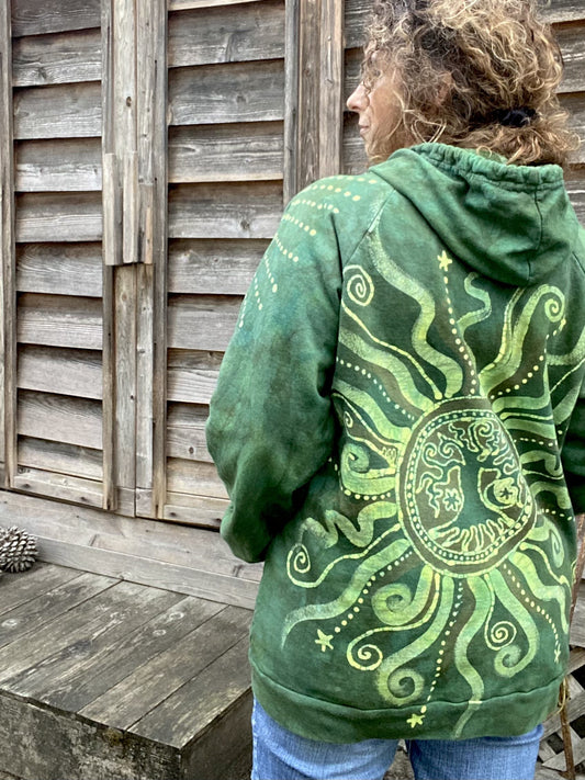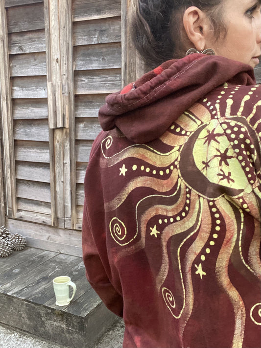 Fire On The Mountain Handcrafted Pullover Batik Hoodie - Organic Cotton - Size Large ONLY