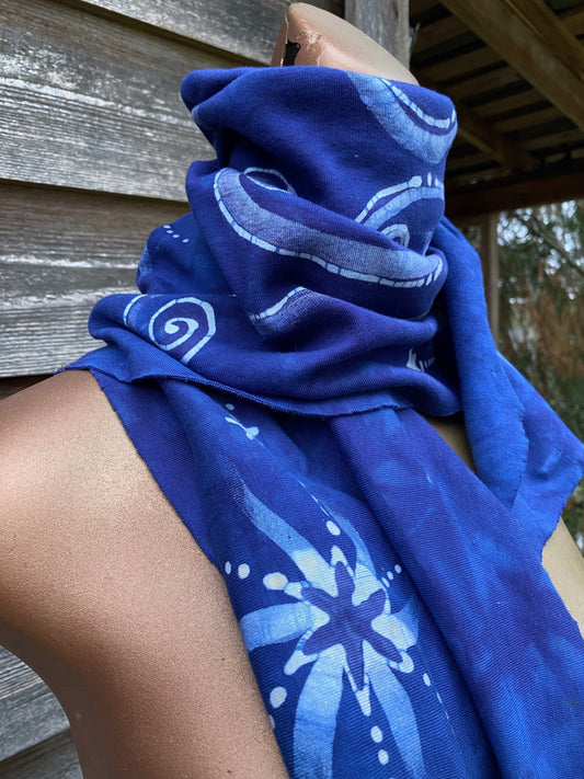 Blue Moon Rising - Hand Painted Organic Knit Fabric Scarf