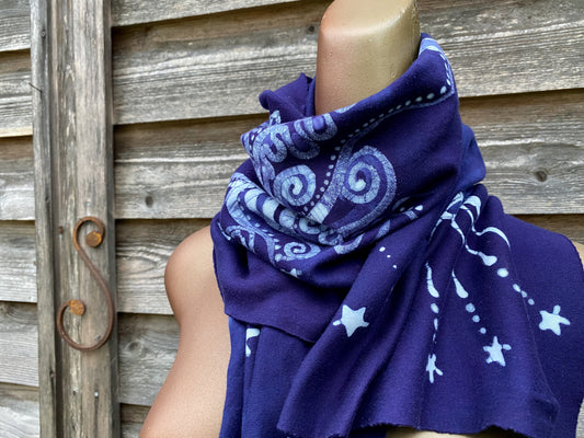 Guided By Stars Navy Blue Night - Hand Painted Organic Knit Fabric Scarf