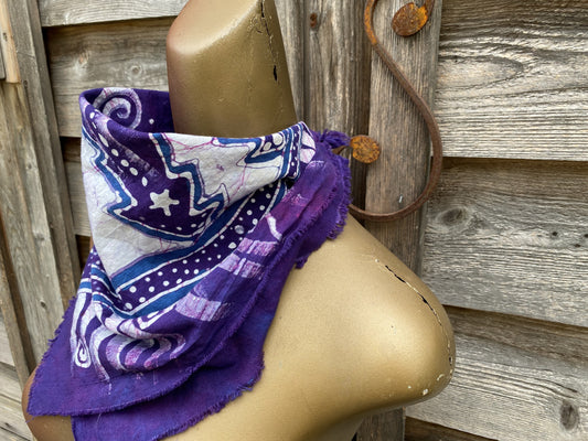 Purple Paisley Handmade Batik Bandana / Organic Cotton Scarf