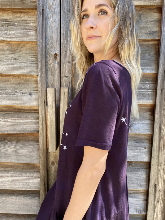 Plum Tree Moonlight Dancer in Deep Purple - Short Sleeve Batik Dress