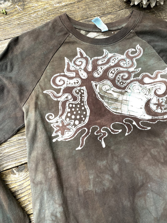 Earth Tree - Raglan Long Sleeve Batik Top by Batikwalla - Size Small (unisex)