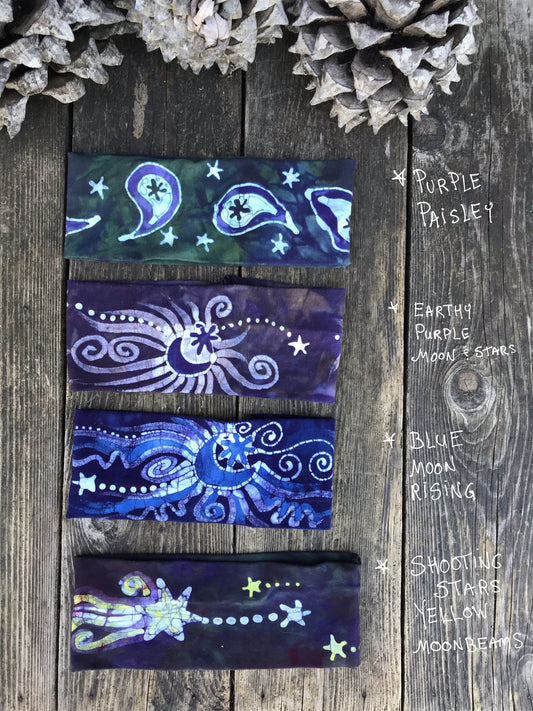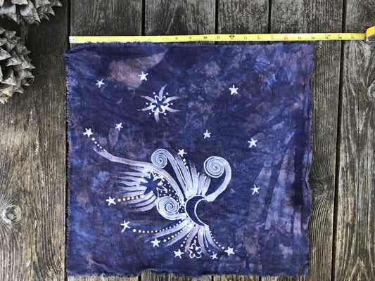 Blue Moons of Midnight Handmade Batik Scarf in Woven Organic Cotton