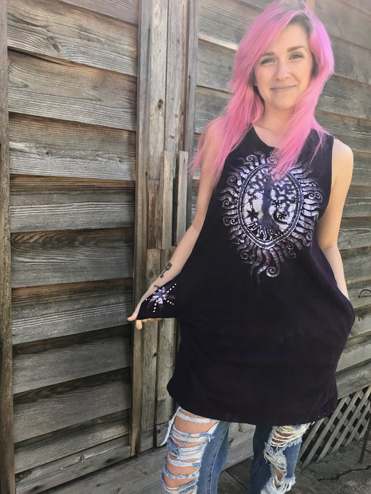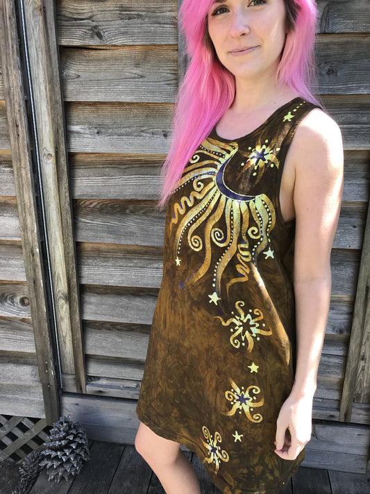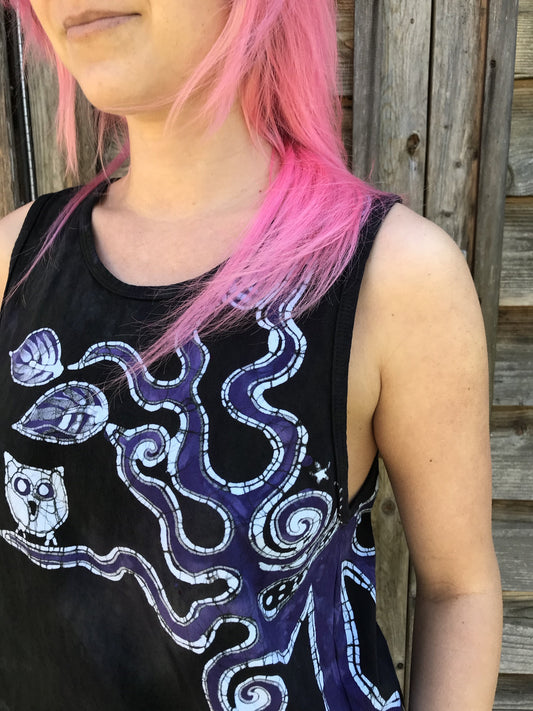 Moss and Purple Owl Batik Dress - Size Medium ONLY