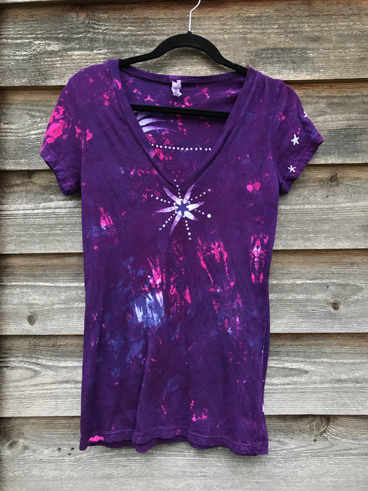 Sale Basket - Lightly Sweet Center Star in Bright Purple Hand Painted Vneck Tee - Size XL