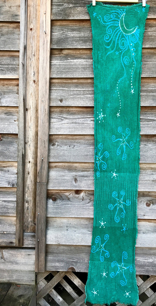 Starry Nightscape Handmade Batik Scarf in Organic Cotton
