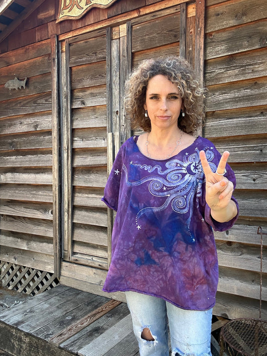 Pretty in Purple – Moonbeams Batik Cotton Tee – Size 2X