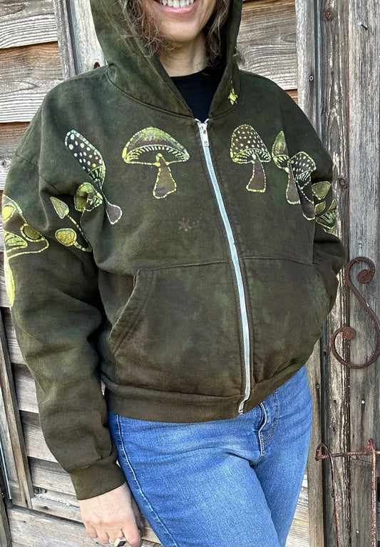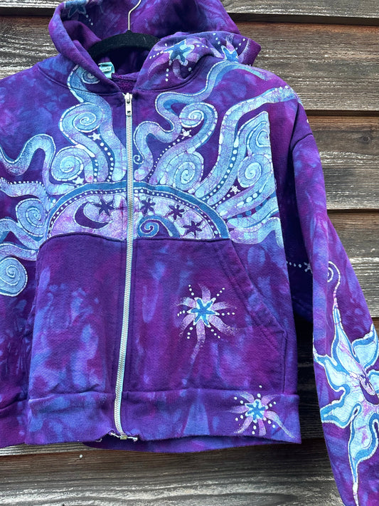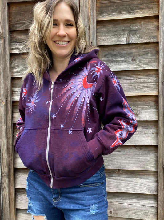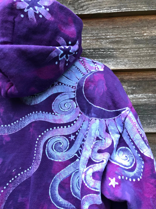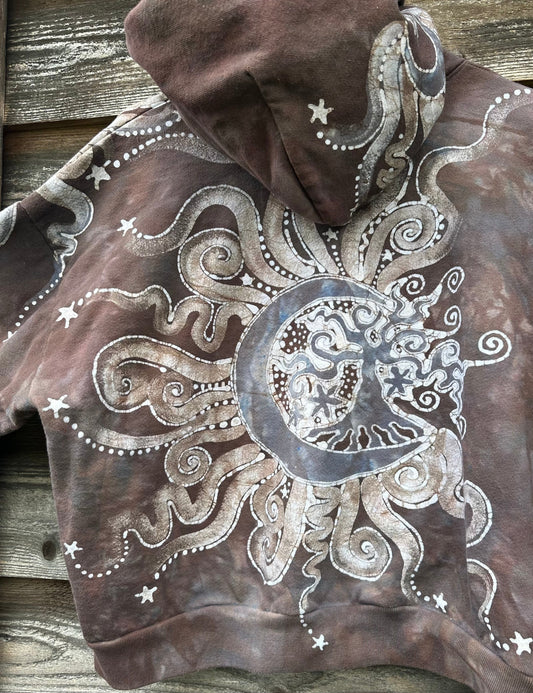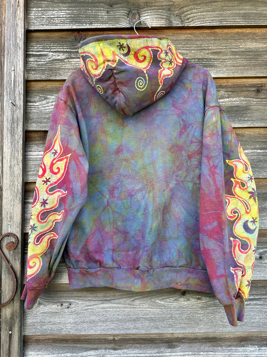 Driftwood Moonbeams Handcrafted Batik Zipper Hoodie - Unisex Size Medium