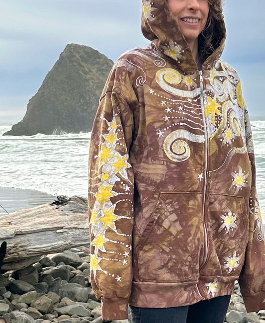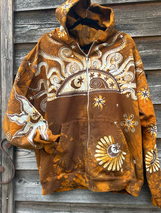 Driftwood Moonbeams Handcrafted Batik Zipper Hoodie - Unisex Size XL