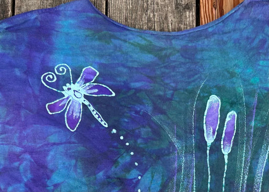 Dragonfly and Cattails Cotton Cut Cropped Tee - Plus Sizes 2X and 3X
