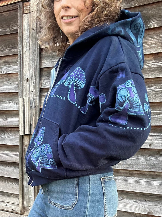 Purple Midnight Mushroom Hunter Batik Hoodie