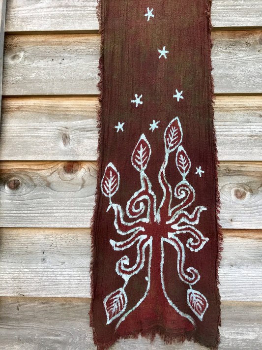 Brown Earth Oak Tree Handmade Batik Scarf in Organic Cotton